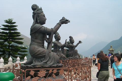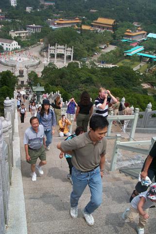 We woke up early on 10/5 and took a tour to Lantau Island. Unfortunately the tour involved a ferry ride to the island (luckily the ferry came complete with vomit bags). We visited Cheung Sha Beach (squat toilets and shark prevention nets!), Tai O fishing village, and Po Lin Monastery (home of the the world's tallest, seated, outdoor bronze Buddha statue).